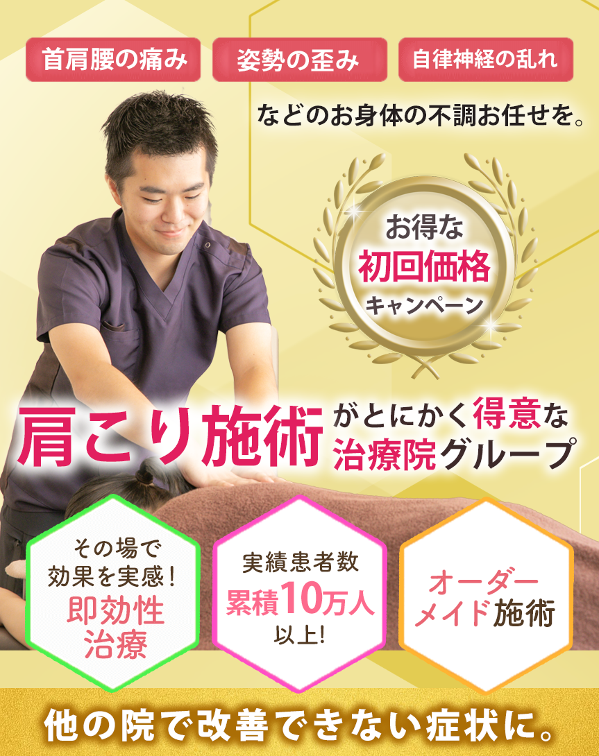 当院では、肩や首の筋肉の状態や姿勢を確認したうえで、血流改善や筋肉調整を目的とした施術を行っています。慢性的な肩こりや肩の不快感でお悩みの方は、ぜひお気軽にご相談ください。